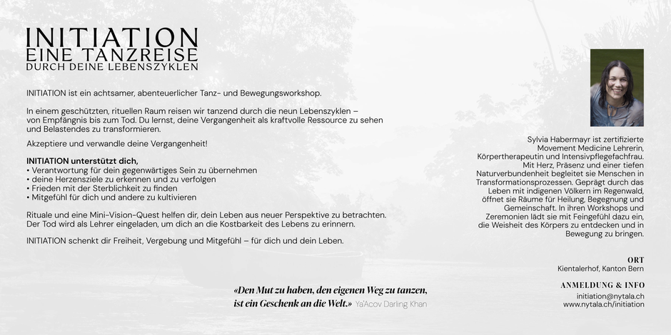 Weitere Infos folgen bald. Falls Du Dich interessierst melde Dich bei initiation@nytala.ch und wir lassen Dir weitere Infos zukommen.