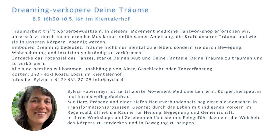 Infos & Anmeldung: Sylvia Habermayr, 079 462 20 09, sylvia.habermayr@nytala.ch